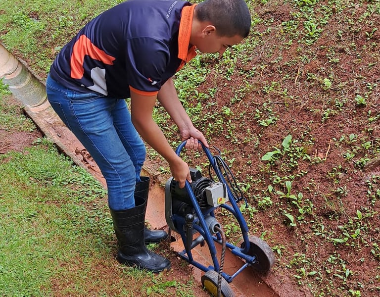 Fazemos limpezas preventivas (a cada ano) e desobstruções por emergência nas áreas comuns dos edifícios e também dentro das unidades.